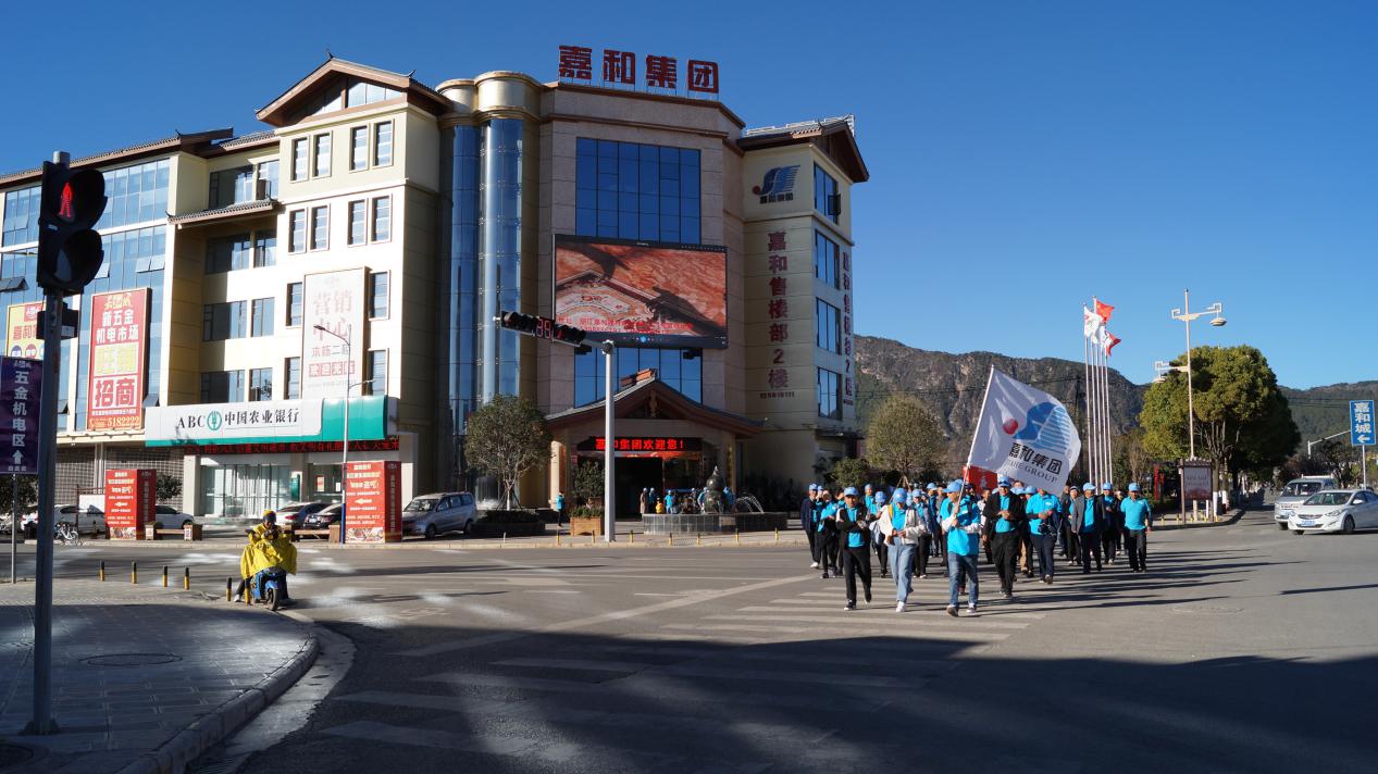 安防部同事积极为队伍开路,其他嘉和人紧跟队伍,完美诠释了嘉和人不忘初心、砥砺前行,一声承诺、全力以赴的品质。