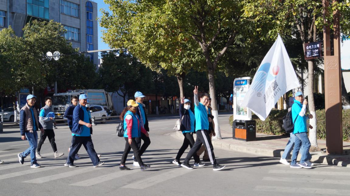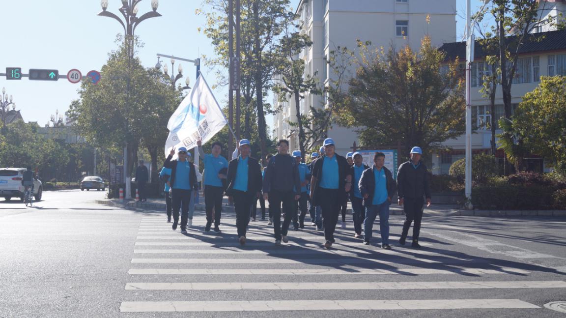 跟着光,随着风,朝着雪山,嘉和集团又迎来一场盛会:2019年第四季度团建活动。在寒冷的冬天,因嘉和人满怀期待、跃跃欲试的心情,天气也变得温暖起来。11月30日上午9:30嘉和集团全体员工在洪文兴董事长的带领下,身着蓝色文化衫,头戴蓝色文化帽,朝着雪山方向挺进,从集团办公楼出发,经过长水路,进入雪山路,一路向北,迎来了第一项徒步10公里的挑战。
