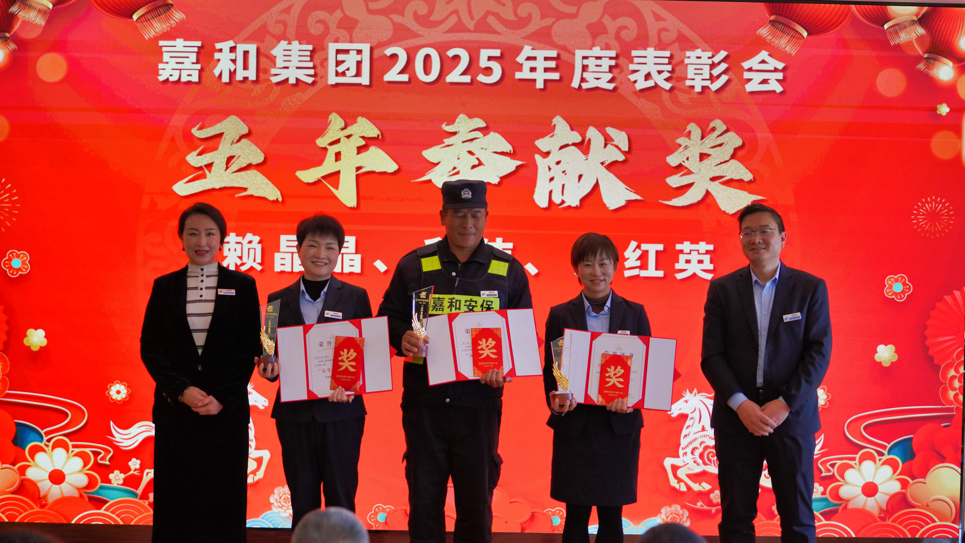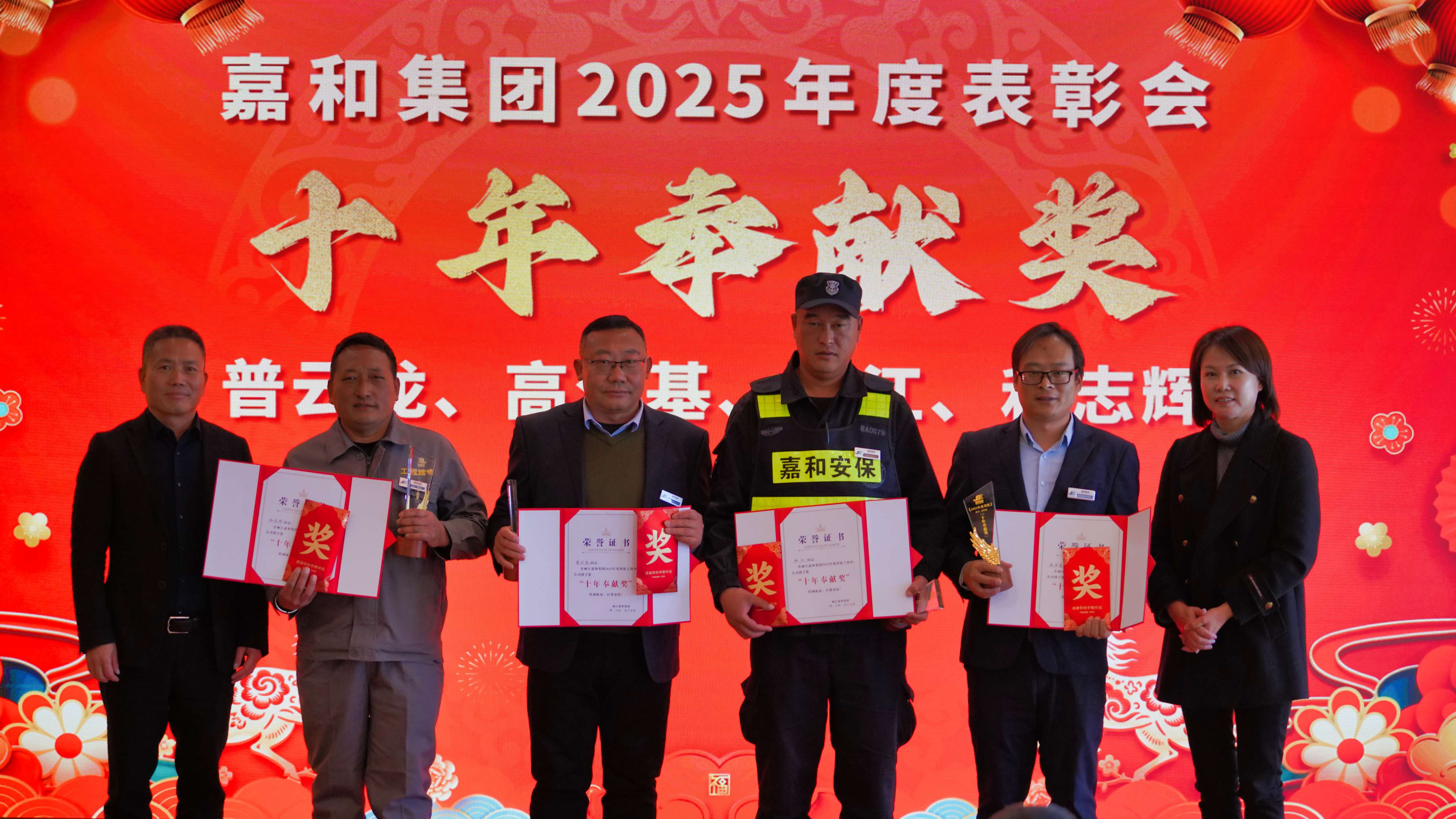 随后,大会进入备受关注的表彰环节。在过去一年中,涌现出一批在逆境中依然恪守职责、勇于担当的个人与集体。本次颁发了“优秀员工奖”“最佳服务奖”“最佳执行力奖”“先进部门奖”“主人翁奖”“优秀新人奖”“五年奉献奖”“十年奉献奖” 等多个奖项。他们或是业务一线的坚韧力量,或是协同支撑的幕后担当,或是长期陪伴的忠诚伙伴。从他们身上,我们看到的是嘉和文化的生动实践,也是面向未来攻坚克难的信心基石。
